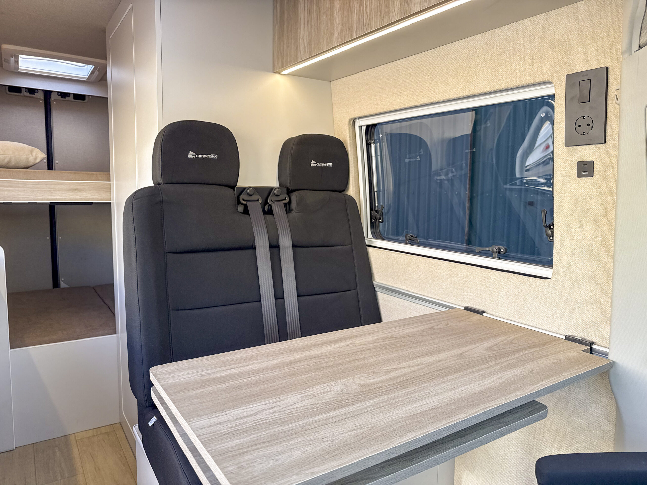 • Asiento homologado para circular dos pasajeros en zona salón con ISOFIX