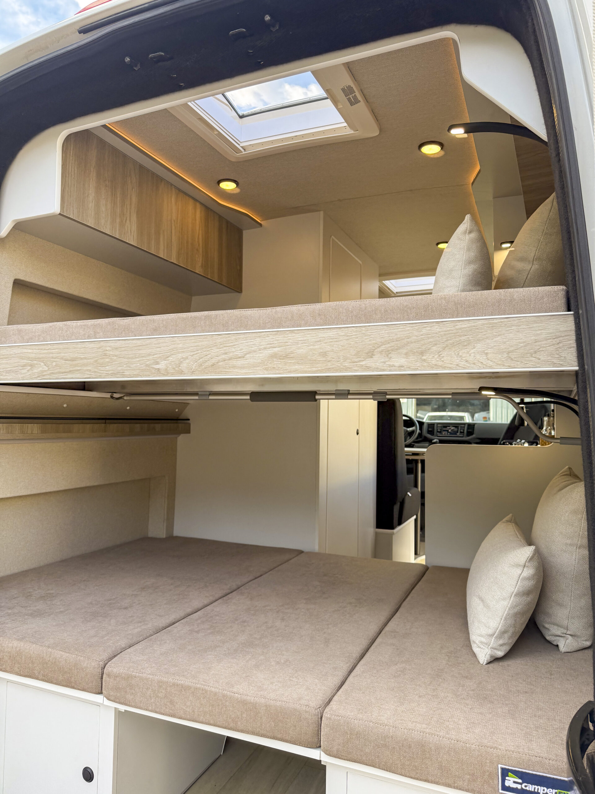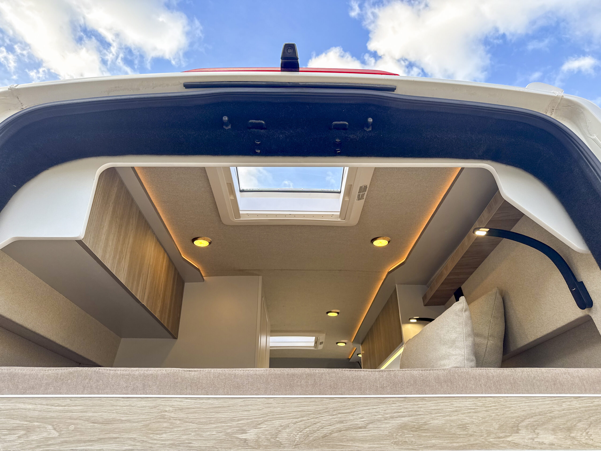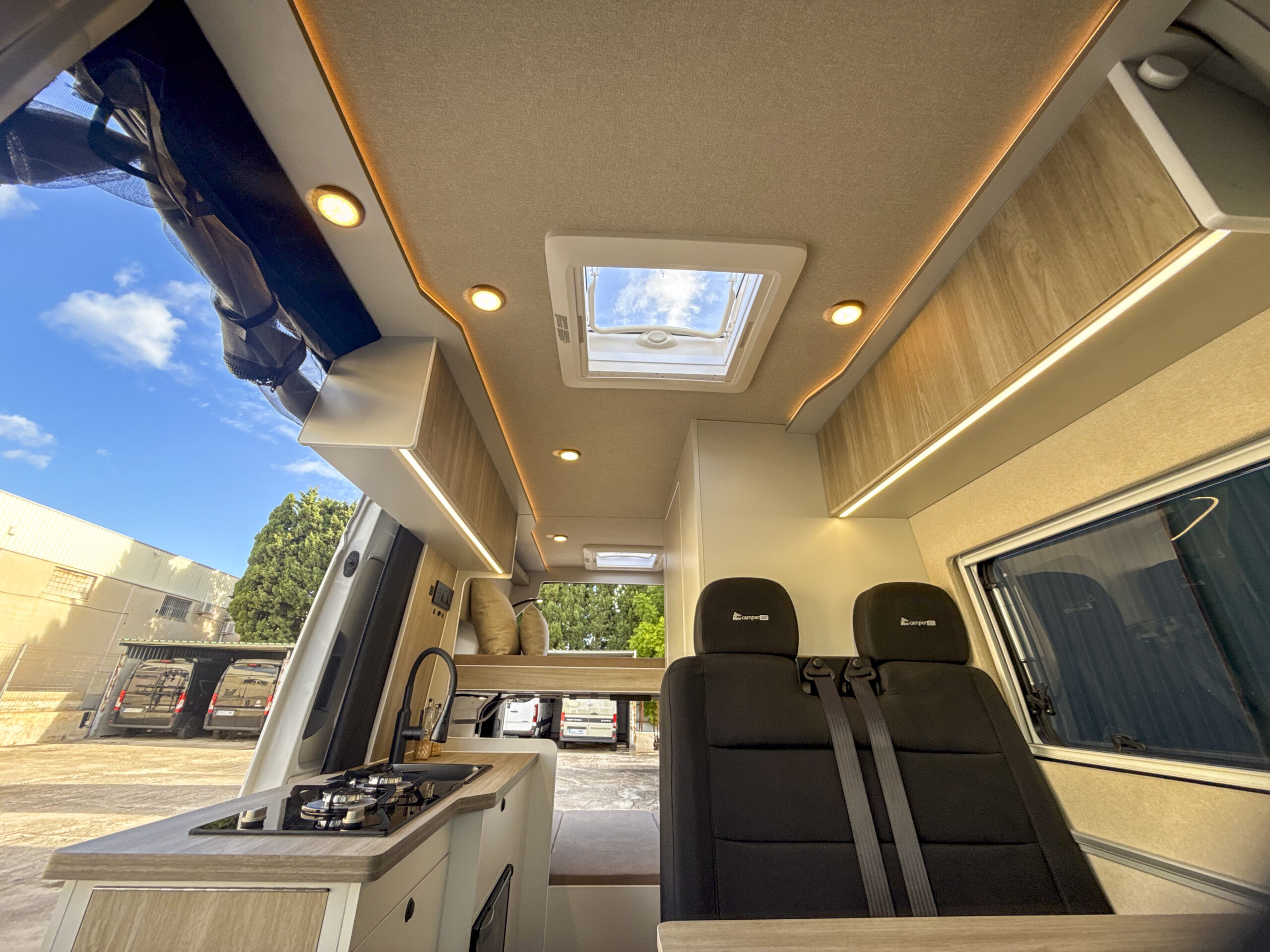 • 1 Claraboya de 28x28cm en zona baño con oscurecedor y mosquitera.