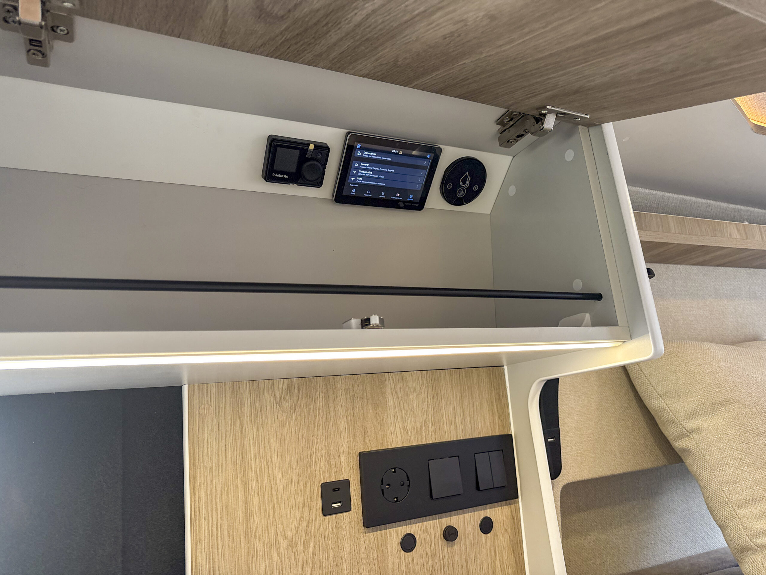 • Sistema de centralita Victron para la gestión de la energía , niveles de batería , estados de carga, gestión de inversor, niveles de agua
